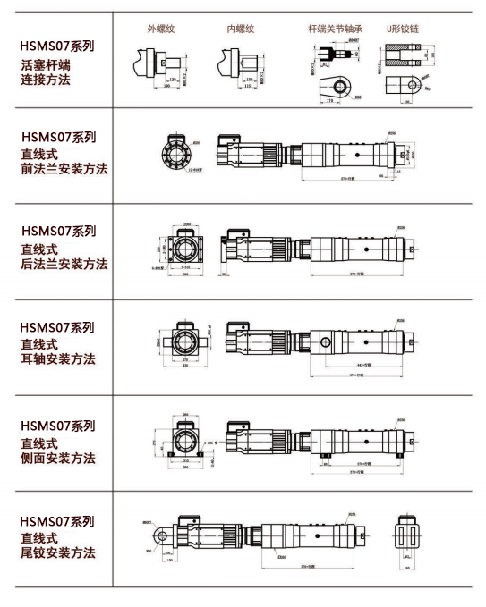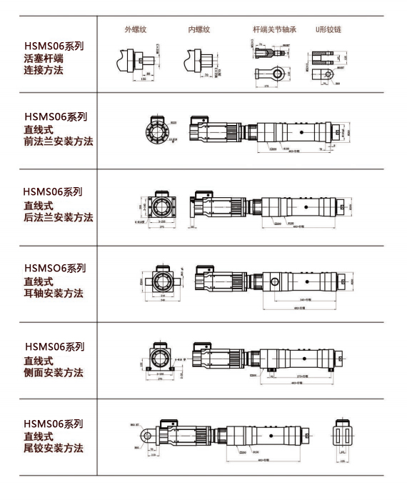 汉赛姆传动科技有限公司利用多年来在重工制造过程中积累的先进经验,研发的HSMS系列电动缸能够适用不同场合、适应不同吨位、具备不同模块的电动缸,电动缸推力最大可达600KN,并可根据客户的使用要求和产品特点,提供个性化的定制服务,HSMS系列电动缸具有一下特点:品质稳定、质量可信、能够承受各种恶劣环境,同时可根据各种要求特殊定制。