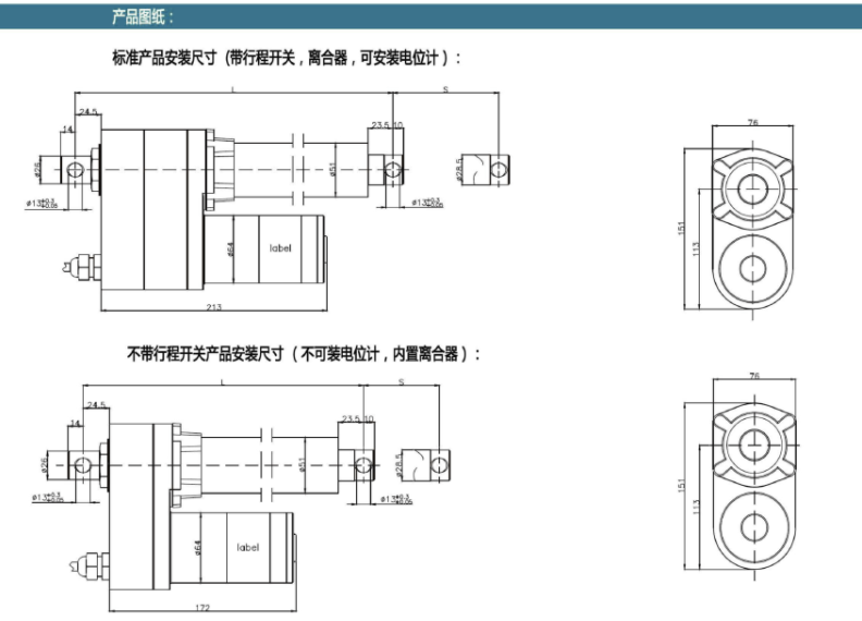 不带行程开关产品安装尺寸: