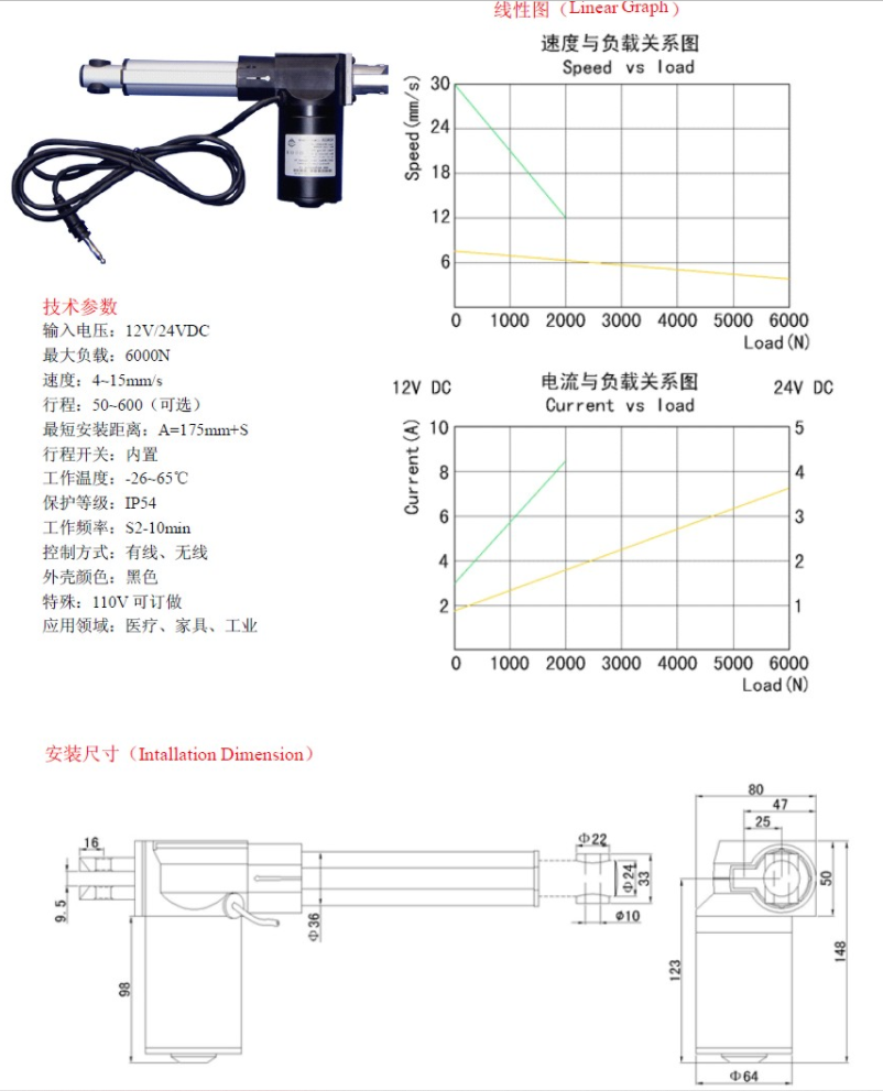 最大速度在负载6000N时可达4-15mm/s