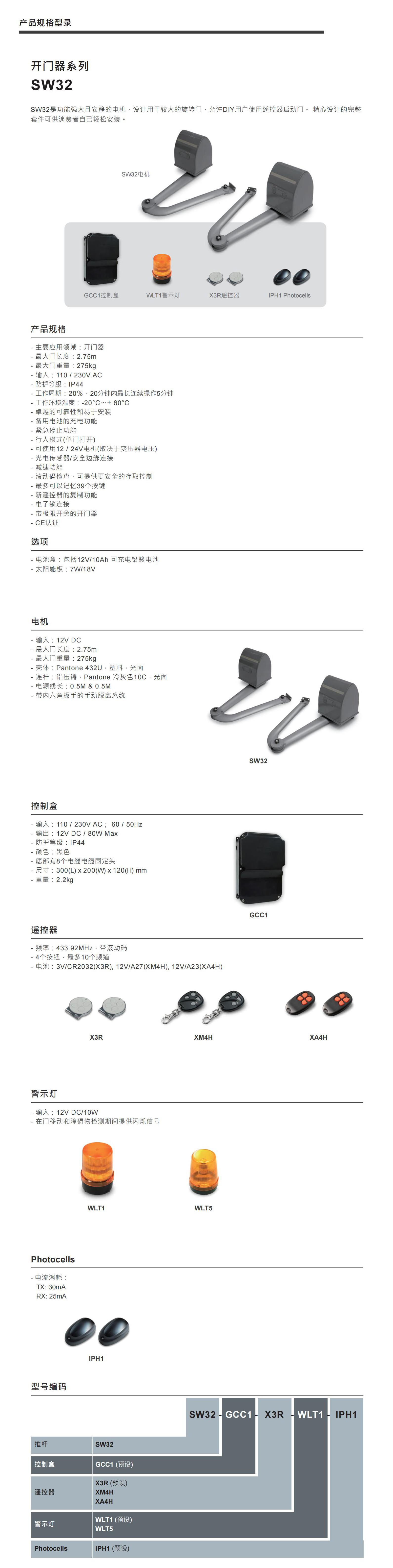 SW32是功能强大且安静的电机,设计用于较大的旋转门,允许DIY用户使用遥控器启动门。 精心设计的完整